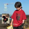 Camiseta Roja para Niños Niños 2026 Verano Nueva Llegada Niños Ropa Interior Año Nuevo Top Niños Grandes Algodón Puro Manga Corta Ropa de Año Nuevo Moderna