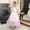 Estilo K Popular de Exportación Vestido de Princesa de Encaje de Cintura Alta Falda de Malla Vestido para Niños Ropa para Boda Dama de Honor Actuación