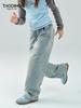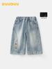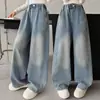 Jeans para niña Amoy otoño nuevo para niños grandes casuales tubo recto deslavado azul claro algodón americano primavera y otoño pantalones casuales