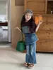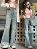 Qiu Duo Meng Pantalones Acampanados con Abertura en el Pie para Bebé Niña 2025 Primavera y Otoño Nuevo Jeans Casuales de Estilo Coreano para Niños
