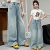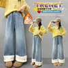 Pantalones vaqueros de niña para primavera y otoño, pantalones de moda para niñas, pantalones rectos de pierna ancha, ropa de primavera para niños grandes, pantalones para niños