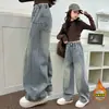 Pantalones vaqueros con forro polar para niña Otoño e Invierno 2025 Nuevos Pantalones gruesos para niño Pantalones rectos de pierna ancha para niña