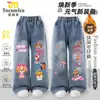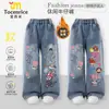 Jeans Rectos Regulares de Bordado de Dibujos Animados para Niñas, Primavera y Otoño, Corte Ajustado, Pantalones Largos para Niños Pequeños y Bebés