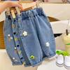 Pantalones Vaqueros de Verano Finos de Nueve Puntos con Cubre Pompis Falsos de Dos Piezas en Color Desgastado Estilo Coreano Nuevo para Niñas Yuyu Princess