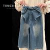 Moda Infantil: Pantalones Vaqueros de Primavera con Lazo para Niñas, Estilo Coreano Elegante, Pierna Recta Ancha, Novedad 2026