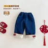 Jeans Calientes con Forro de Felpa para Niñas Otoño e Invierno Chaqueta Integrada de Felpa Pantalones de Pierna Recta 2025 Nuevos Pantalones de Pierna Ancha para Bebés Niñas