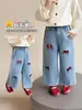 Jeans de Primavera y Otoño para Niñas 2026 Nuevo Estilo Moda Chica Estilo Coreano Encaje Volante Lazo Vaqueros Estampados
