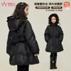 Chaqueta de Plumas para Niña Princess Yuan Yuan de Longitud Media 2025 Invierno Nuevo Ajuste en la Cintura Engrosada Relleno de Plumas de Pato Blanco Abrigo Cálido