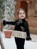 Top de Invierno 2024 para Niñas Amybaby Nueva Llegada Moda Retro Estilo Dorado Lazo Abrigo Corto