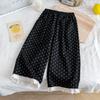 Pantalones Casuales Nuevos de Primavera para Niñas con Lunares, Pantalones Largos Sueltos con Adorno de Encaje para Niños, Elegantes Pantalones de Pierna Ancha para Bebés