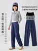 Pantalones casuales de otoño para niñas, nuevos pantalones de primavera y otoño de estilo occidental holgados y grandes para niños de talla mediana y grande, con cintura elástica a la moda.