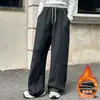 Pantalones deportivos casuales de color sólido para niñas, pantalones de invierno forrados de vellón, gruesos con puño en el tobillo, estilo coreano, sueltos, pantalones de sudadera para niños, niños mayores y niñas