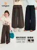 Pantalones para Niños Pudding Haru 2026 Nuevas Llegadas de Verano Pantalones Casuales de Pierna Ancha para Niños Pantalones Largos con Dobladillo de Falda Mori-kei