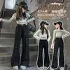 Pantalones de Otoño e Invierno para Niñas 2024 Invierno Nuevos Populares en Internet Estilo Extranjero Deportivo Casual Pierna Recta Pierna Ancha