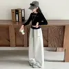Pudding Haru Pantalones Elegantes de Otoño para Niñas 2025 Nuevos Pantalones Casuales Tejidos de Pierna Ancha de Moda para Niños