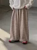 2026 Pantalones para Niños Estilo Coreano Nuevo Tejido Sensación Holgada Rayas Retro Pierna Ancha Primavera y Otoño Adelgazantes Holgados Puño Elástico Pantalones