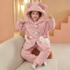 Pijama Acolchado Grueso de Tres Capas para Niños de Otoño e Invierno Set Lindo de Dibujos Animados para Niñas Ropa de Casa de Franela con Cuello