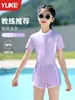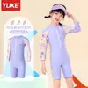 Traje de baño para niñas Nuevo de verano de una pieza con mangas largas para niñas de mediana edad y mayores Traje de baño profesional con protección solar Al por mayor