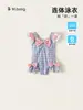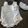 Traje de baño para niña 2025 Verano Nuevo Estilo Occidental Traje de baño dulce de encaje a cuadros para niños Gorro de baño moderno para bebé
