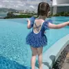Traje de baño de una pieza para niños, lindo traje de baño de protección solar para niñas, cómodo y elegante, traje de baño de aguas termales para niñas pequeñas y medianas.