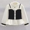 Moda para Niñas Estilo Chanel Camisa Falsa de Dos Piezas Primavera y Otoño Nueva Estudiante Niñas Elegante Princesa Manga Larga Top
