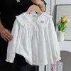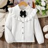 Camisas para Niñas 2025 Otoño e Invierno Nuevas Bordadas con Encaje Algodón Puro Blanca Estilo Preppy Cuello Camisero Tops Casuales