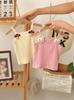 Pudding Haru Camisola para Niñas con Estampado de Letras y Color de Contraste 2024 Nuevo Verano Dulce Fresca Sin Mangas Elástica Chaleco para Niñas