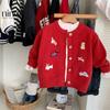 Suéter Infantil Kingli Invierno Coreano Nueva Llegada para Niños y Niñas Estilo Occidental Bordado Perrito Cardigan Tejido Rojo Superior Moderno