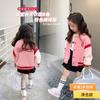 [Estilo de Gran Venta] Tops de Uniforme de Béisbol Rosado para Niñas Primavera y Otoño para Niños Estilo Coreano Color de Contraste Tops de Moda Top
