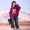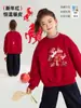 Sudadera Infantil Pudding Haru 2025 Invierno Nueva Sudadera de Terciopelo Rojo para Niñas Sudadera de Año Nuevo para Niños