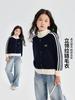 Suéter Nuevo Otoño 2024 para Niñas Bloques de Color Pudín Haru Cuello Alto Americano Cremallera Camisa Suéter de Otoño para Niños