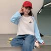 Top de Niña Amybaby Primavera 2026 Nuevo Diseño Casual Americano Patchwork Mangas Raglán Holgado Camiseta Base