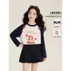 Camiseta Wuri Boo con mangas raglán en contraste y estampado de dibujos animados para niña, estilo occidental, bonita y casual, de otoño para niña.