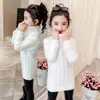 Nuevo Top de Otoño e Invierno para Niños, Camiseta Básica Versátil, Suéter Grueso Stychy con Cuello Semi Alto para Niñas, Ropa Blanca Espesa para Niños