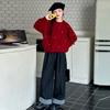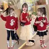 Ropa Infantil ZuoXi Niñas Suéter Rojo Atuendo de Año Nuevo Infantil Invierno 2025 Nuevo Estilo Niñas Grandes Suéter Grueso de Lana