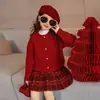 Suéter para Niñas Invierno 2026 Año Nuevo Chino del Caballo Conjunto de Cárdigan de Punto Rojo Ropa de Invierno para Niños Ropa de Saludo de Año Nuevo