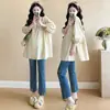 Camisa de muñeca nueva para embarazadas de primavera y otoño 2025, pequeña, fresca, holgada, adelgazante, a la moda, combinable, para embarazadas, camisa reductora de edad.
