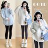 Ropa de Maternidad Estilo Coreano Otoño e Invierno Nuevo Sudadera con Capucha y Media Cremallera Talla Grande Cubre el Vientre Sin Mostrar el Embarazo Tendencia en Ropa de Trabajo Traje