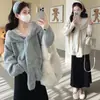 Terciopelo Zorro Plateado Engrosado Cálido Top para Mujer Embarazada para Usar como Prenda Exterior Camiseta Básica Suéter de Largo Medio Camiseta Holgada Traje de Moda Otoño e Invierno