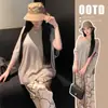 Mujeres Embarazadas Verano 2025 Nuevo Hombro Holgado Combinable Camiseta de Algodón + Pantalones Holgados Retro Estampados con Cordón