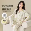 Pijama de algodón puro para primavera y otoño, de gasa doble, para embarazadas, fino, de algodón, para lactancia materna, de manga larga, para el hogar.