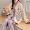 Pijamas de mujer nuevos de otoño e invierno 5a, ropa de confinamiento antibacteriana, ropa de lactancia con apertura lateral, ropa de hogar de algodón de manga larga de talla grande
