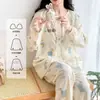 Ropa de Casa para Mujeres Embarazadas 2025 Primavera y Verano Nueva Luna Ropa Algodón Nube Cinturón Almohadilla en el Pecho Pantalones de Manga Larga Posparto Lactancia Tendencia