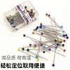 Aguja de perla con cabeza de cristal de color, alfiler de posicionamiento para ropa, aguja de corte de sastre, 50 piezas/caja