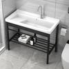 Lavabo de balcón, soporte de lavabo de mesa integrado de cerámica, lavadero de acero inoxidable con tabla de lavar, lavabo grande