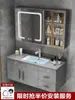 Gabinete de baño de piedra sinterizada de lujo ligero combinación de gabinetes lavabo cerámico integrado para baño lavabo sobre encimera lavamanos de baño para lavarse las manos y la cara