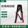 Alicates pelacables multifuncionales de doble propósito, mango bicolor negro y rojo con trinquete, alicates de prensado de cables con cabeza de cristal 6P8P que ahorran trabajo