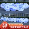 Decoración de Techo de Porcelana Azul y Blanca Danza Hanfu Cheongsam Tela de Seda Paraguas Artesanía Paraguas de Papel Aceitado Paraguas Decorativo Estilo Clásico