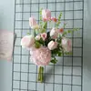 Novia sosteniendo flores, flores artificiales nórdicas, ramo de rosas, accesorios para fotografía de bodas, flores coreanas.