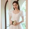Vestido de novia ligero estilo francés para fotografía de viaje de la novia, velo de novia de satén de alta gama estilo bosque, vestido blanco sin tirantes para compromiso